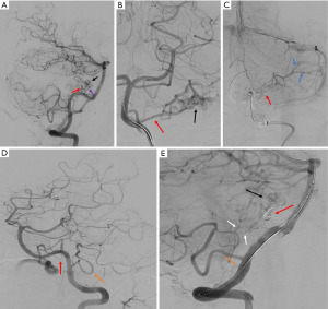 A comprehensive literature review of the MEDLINE, Embase, Google Scholar and Cochrane databases found only eight histopathologically proven cases of AVMs located within the internal acoustic meatus (Table 1) (7-14). The majority of these cases were reported during an era where archaic means such as X-rays to examine for widening of the internal acoustic meatus or gas CT cisternography to examine for outlined lesions were used, and only intra-operatively was an AVM conclusively confirmed (8). None of these historical cases utilized dual modality treatment. We present the first case of an unruptured AVM of the internal acoustic meatus supplied by branches of the AICA and PICA successfully treated with both endovascular and surgical treatment.